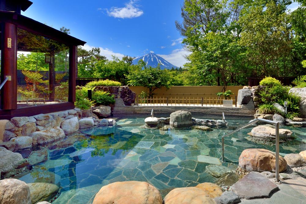 富士山を眺めながら入浴できる霊峰露天風呂や富士山の溶岩洞窟を再現した洞窟風呂などバリエーション豊富なお風呂が用意されています。