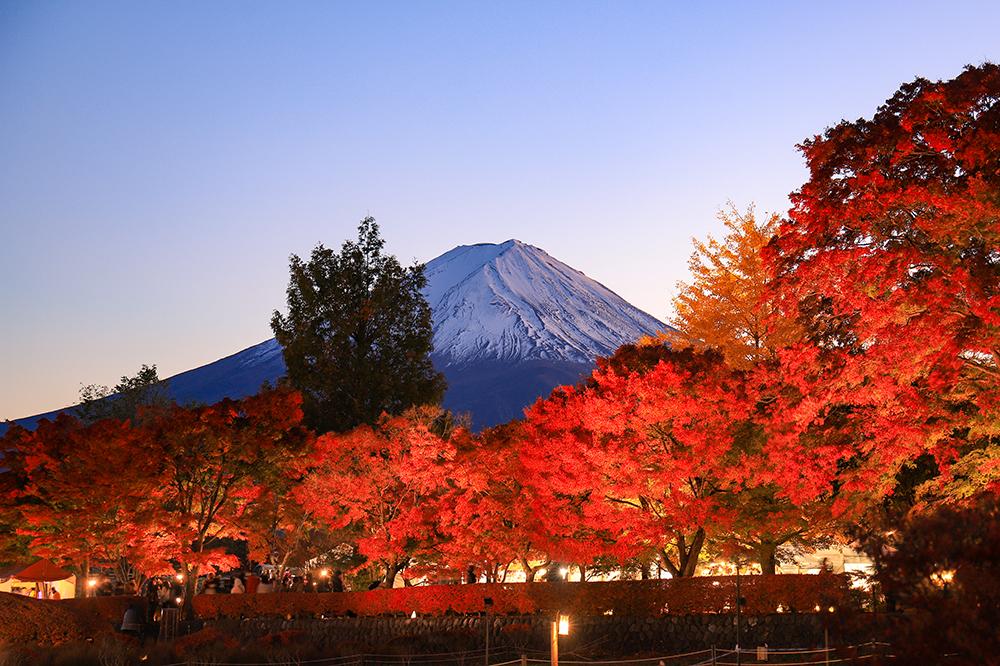 日没直後にはライトアップされたもみじと富士山のコラボレーションを見ることができるので、タイミングを狙って訪れてみてください。