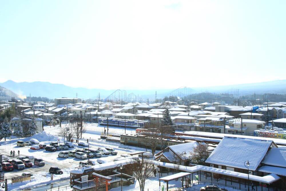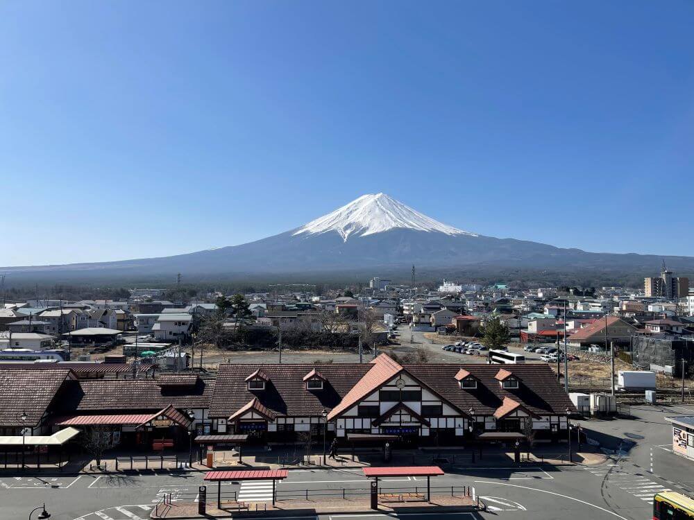 河口湖駅前のライブカメラで、リアルタイムの天気や積雪状況をチェックすることができます。