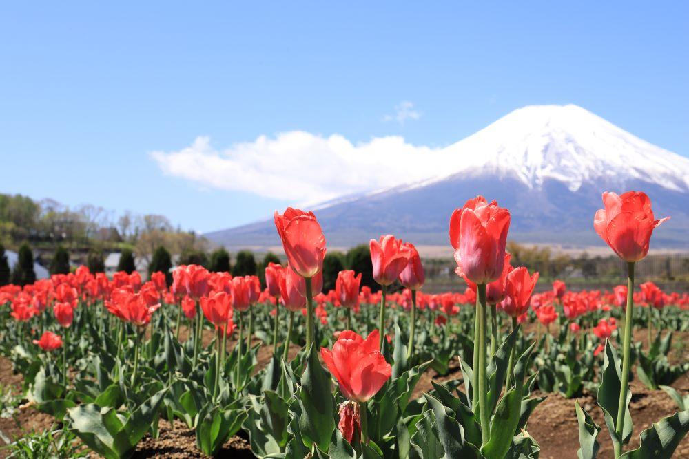 山中湖花の都公園は四季折々さまざまな花を観賞できる観光スポットです。春は可愛らしいチューリップや菜の花が見頃を迎えます。