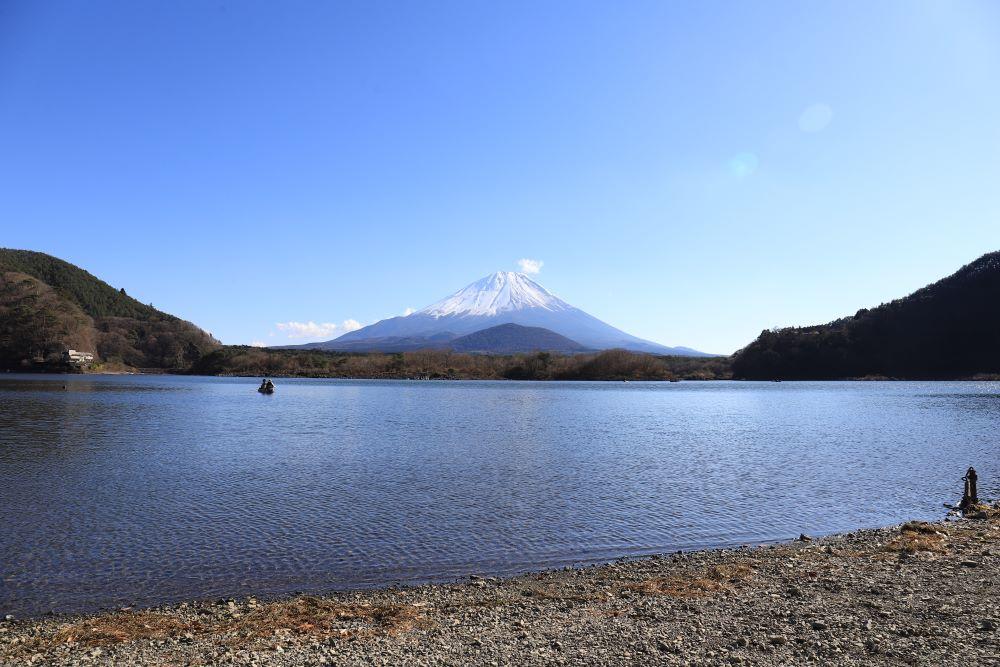 山中湖から河口湖方面へ、河口湖大橋を渡って河口湖の北岸へ抜ければ湖越しの富士山が見られます。西湖は周囲を山に囲まれていますが、根場浜という浜辺から富士山をきれいに見ることができます。近くには「西湖いやしの里根場」などの観光施設もありますよ。