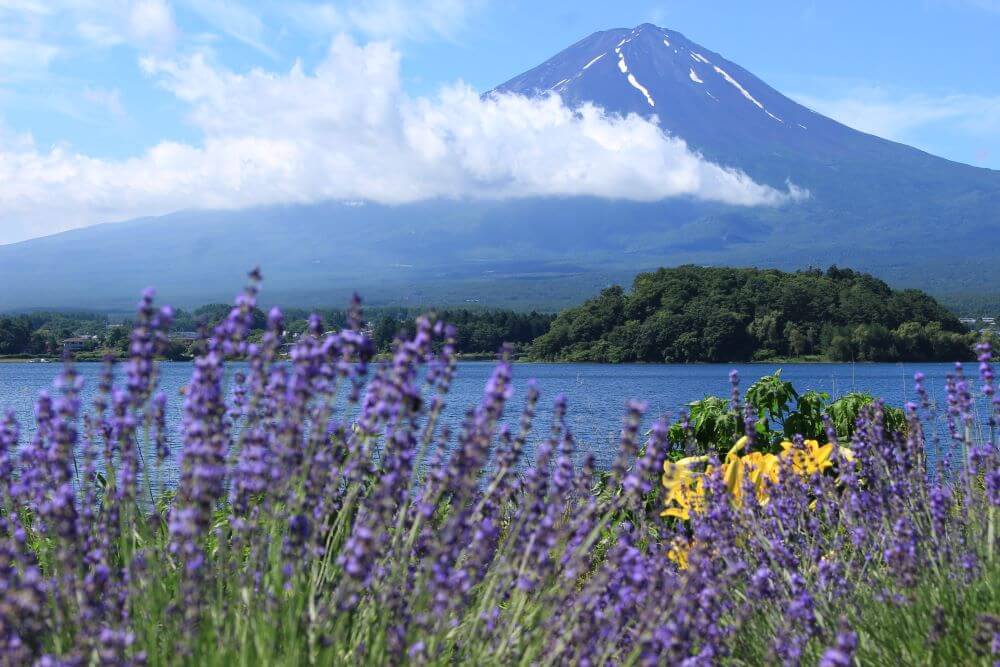 富士五湖の一つ・河口湖は、湖畔沿いに富士山の絶景スポットが数多くあります。なかでも大石公園は有名で、ラベンダーの名所でもあります。6月~7月にかけて富士山と河口湖をバックに美しいラベンダーを鑑賞できますよ。また、公園内にある「河口湖自然生活館」のカフェからも開放的な窓から富士山が良く見えます。食事やお茶をしながらのんびりと富士を眺めるのもおすすめです。