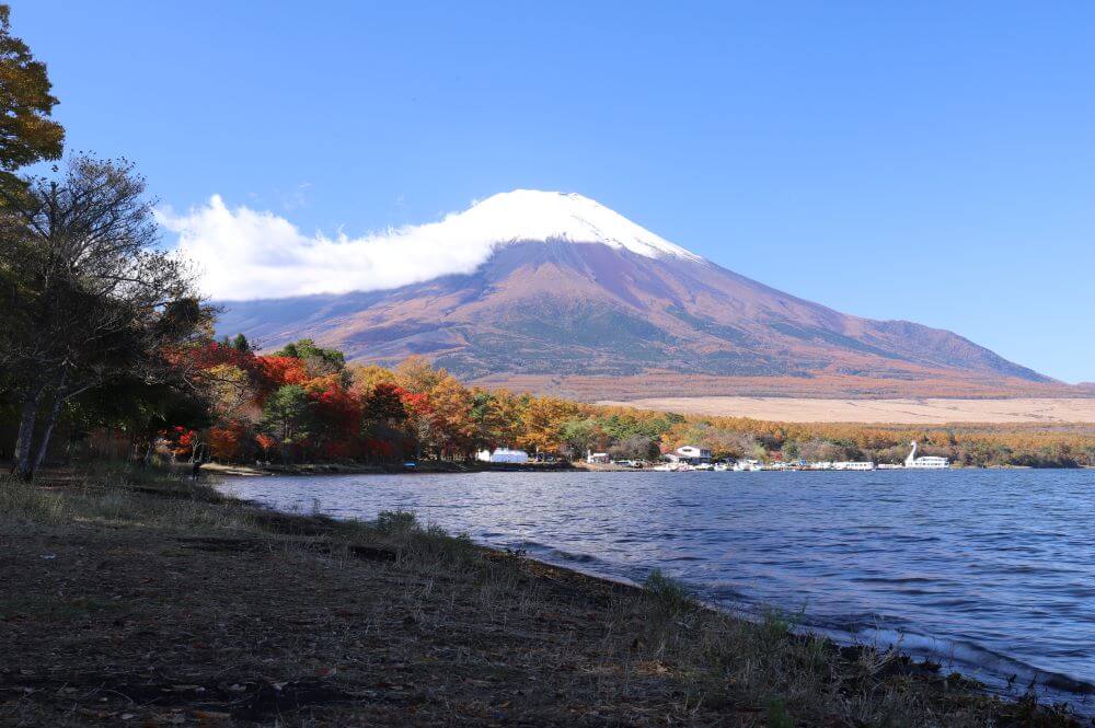 山中湖は、富士五湖の中でもっとも標高が高く、富士山に近い湖です。裾野部分まではっきりと見えるため、山中湖の湖畔からは富士山がとてもダイナミックに大きく見えますよ。