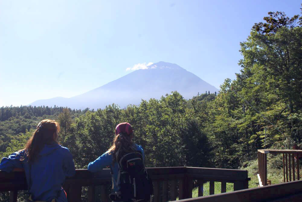 鳴沢村にあるスキー場「ふじてんリゾート」は、富士山一合目にあたる標高およそ1,400m地点にあります。高い場所なだけあって、とても大きな富士山が見えますよ。特に、グリーンシーズン中に体験できるトレッキングコースの一つ「トレイルハイキングコース」の途中にある展望デッキから見る富士山は圧巻です。