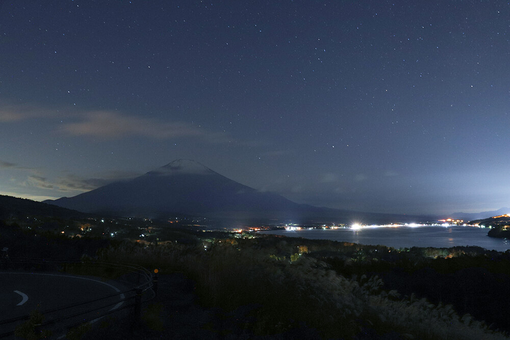忍野村のある峠で、標高1,000mを超える地点から富士山を裾野まで見渡せる展望スポットです。車で展望地の広場まで行くことができ、トイレも設置されているため夜間の撮影もしやすいです。